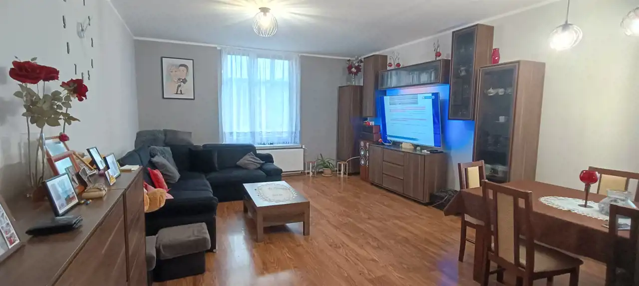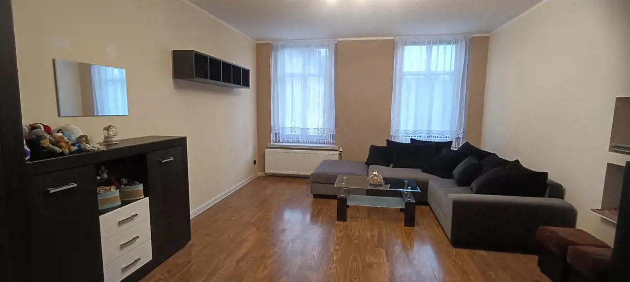 Mieszkanie trzypokojowe o powierzchhni 95,80 m2, mieszczące się na drugim piętrze w kamienicy położonej w centralnej części Piławy Górnej.