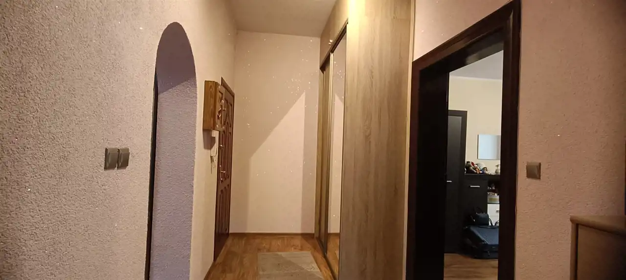 przedpokój, po prawej stronie wejście do kuchni przez którą wchodzi śię do łazienki. Po srtonie lewej wejście do sypialni. Na wprost pokój dzienny, z którego jest wejście do drugiej sypialni. Pomieszczenie gospodarcze/garderoba - oddzielne pomieszczenie z bezpośrednim wejściem z przedpokoju.
