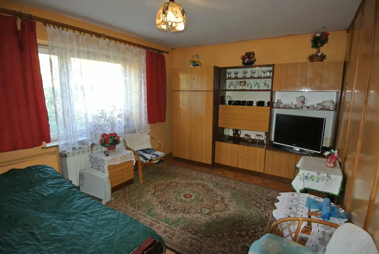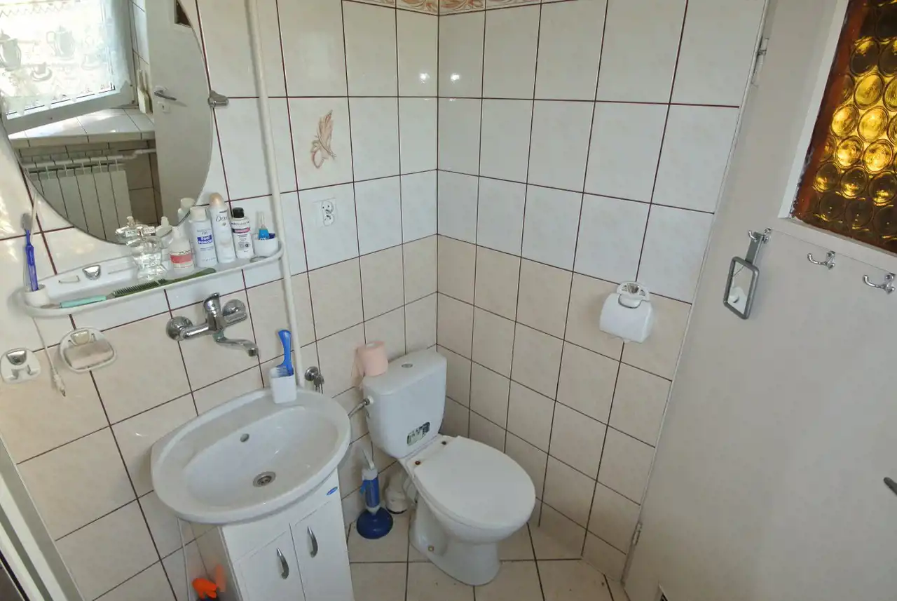 For Sale: A house with an area of approximately 100m2 located in Pińczów in the Grodzisko district. The house is situated on a plot of approximately 545m2, fenced, and slightly sloped. The house consists of: 2 rooms with an area of approximately 18.29m2 and 14.52m2, a bathroom with a toilet with an area of approximately 3.54m2, a kitchen with an area of approximately 7.67m2, a hallway, and a summer kitchen with an area of approximately 40m2 located on the ground floor of the building.