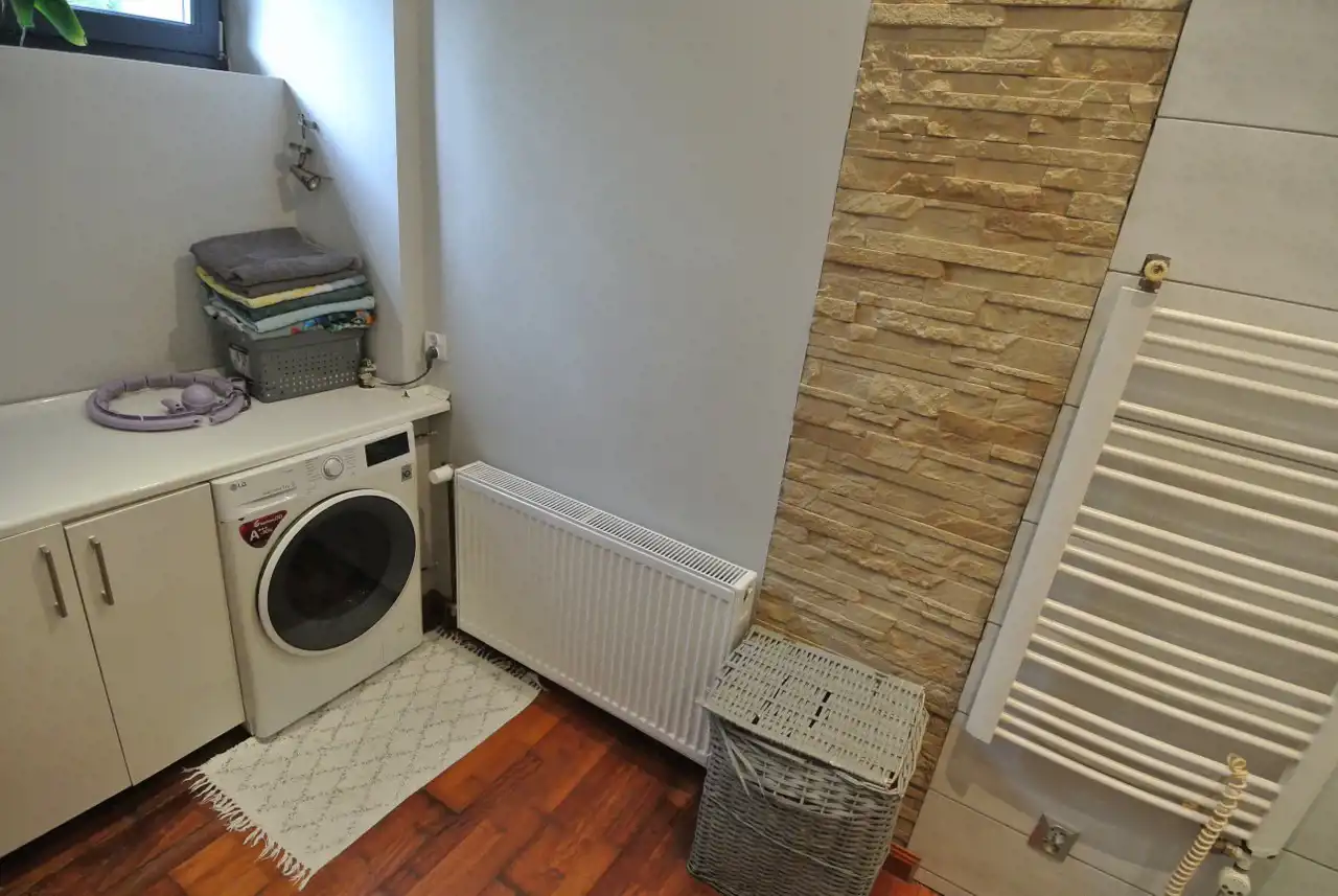 Dom wybudowany z kamienia pińczowskiego, ocieplony styropianem, ogrzewanie pompą ciepła.