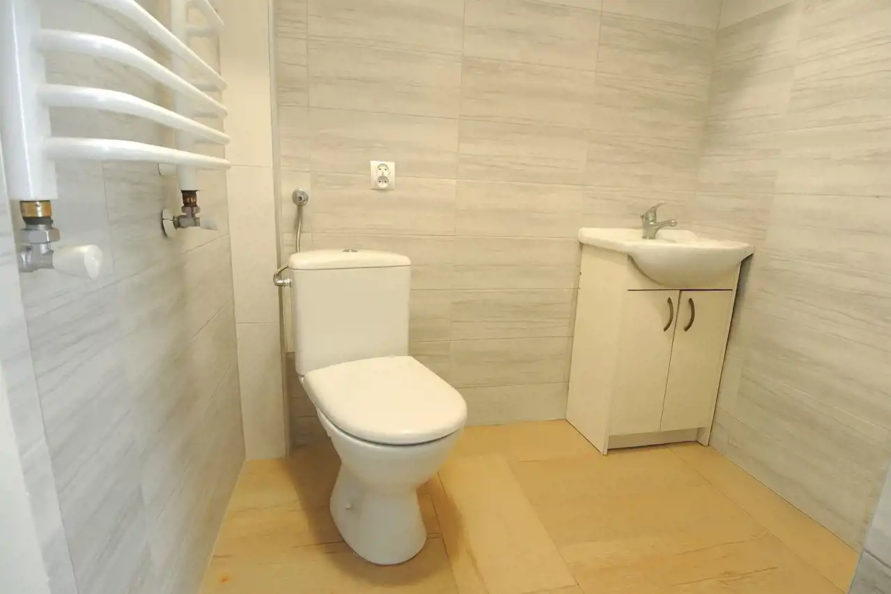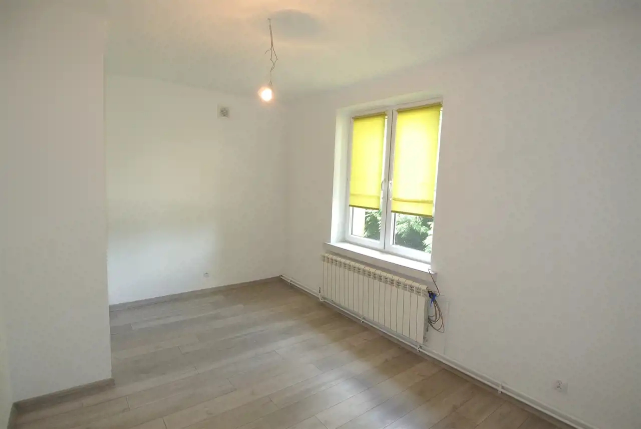Monthly maintenance fees amount to approx. PLN 250, including contributions to the renovation fund, waste disposal, and utility charges based on individual meter readings for electricity and water. The property has individual heating via a solid fuel stove.