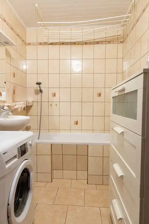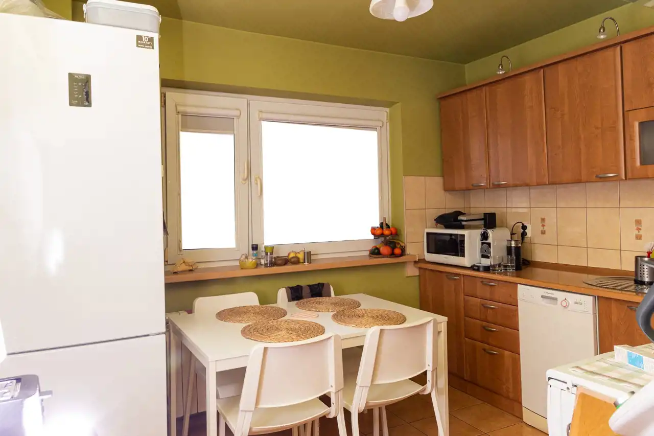 Hot water and heating come from the municipal network. No gas heaters. The rent is approximately 661 PLN (including advances for central heating, water, renovation fund, and garbage collection), with additional charges for electricity according to the meters.