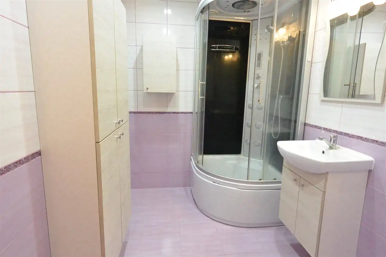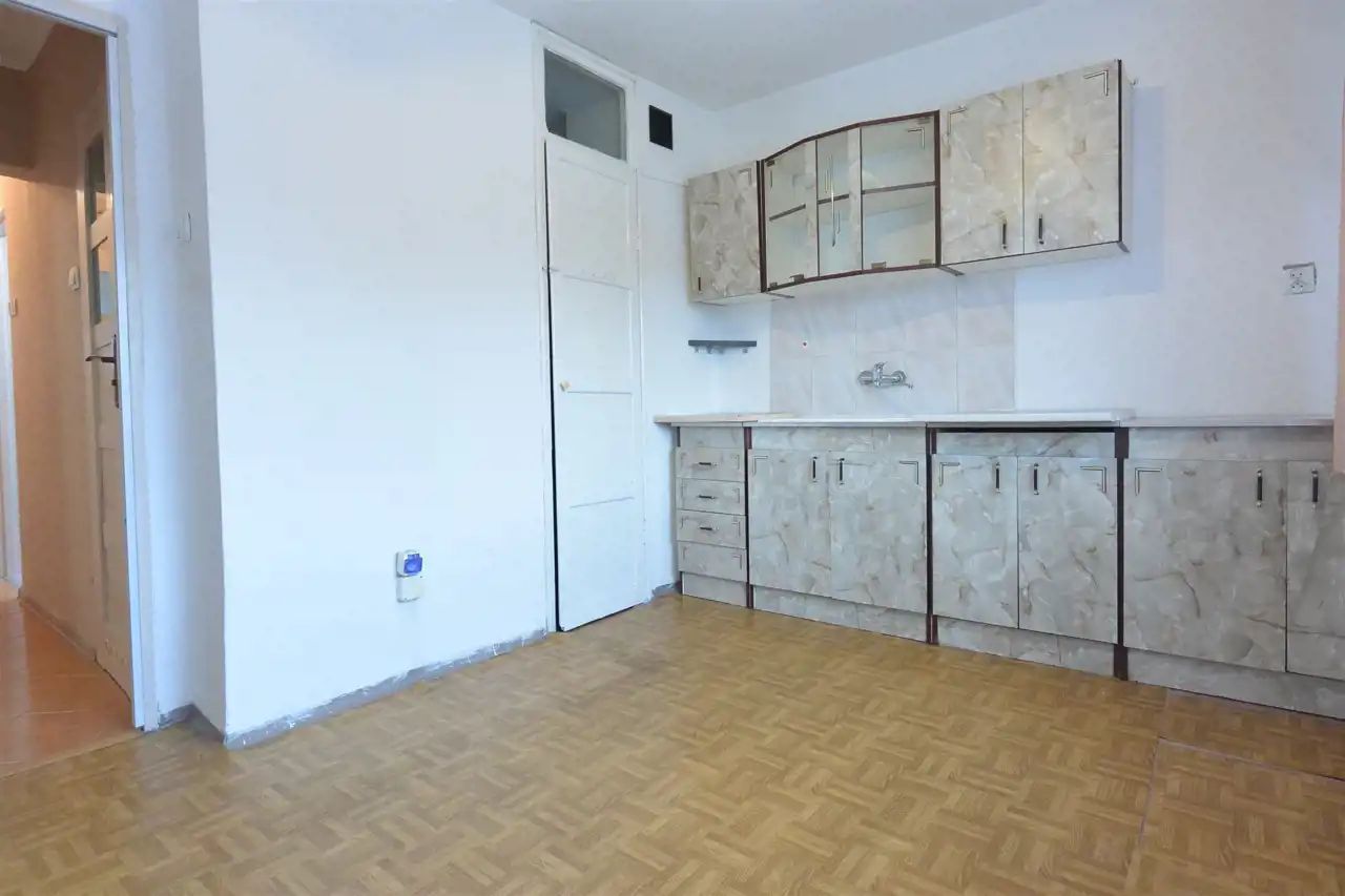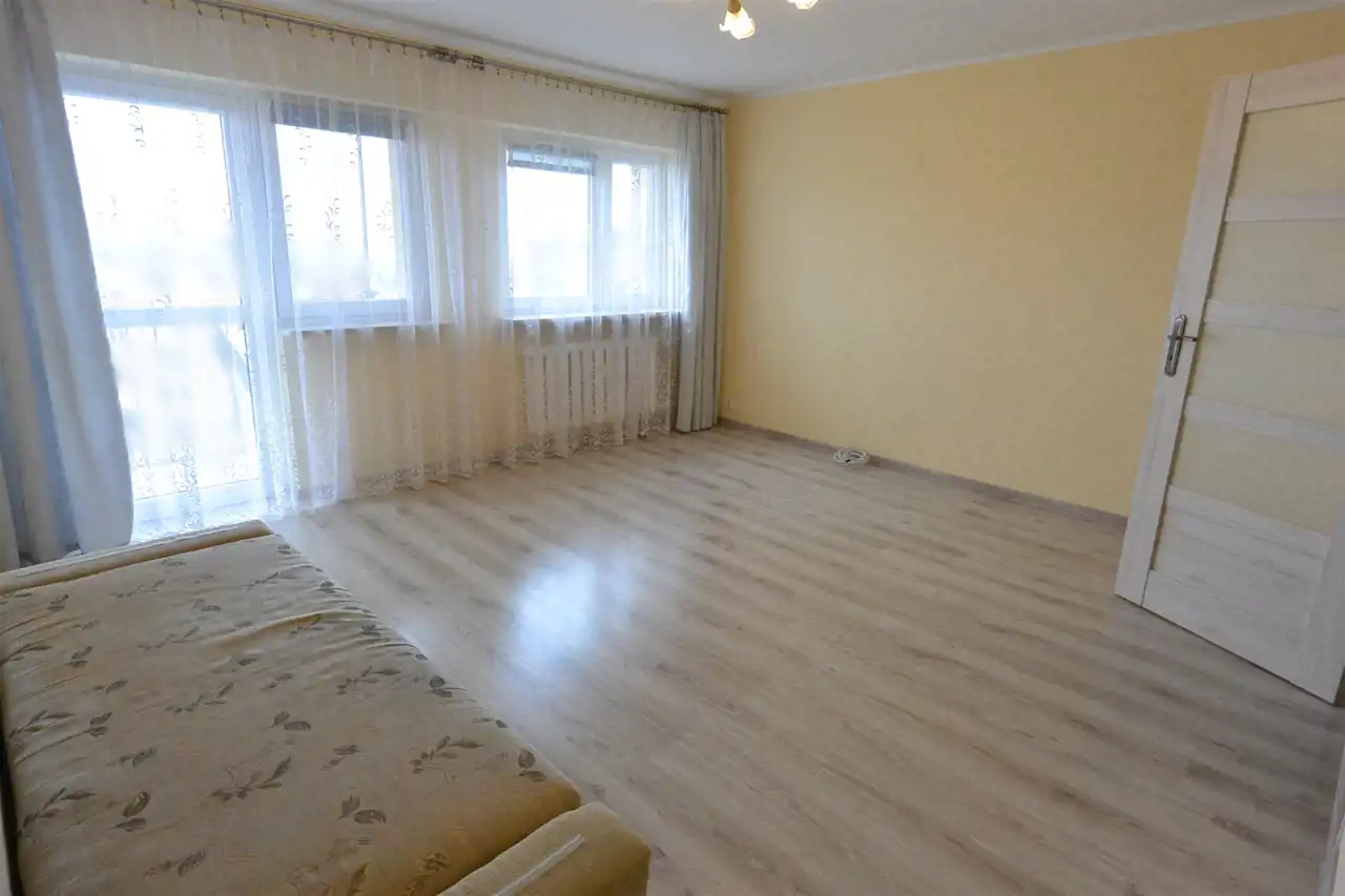 The apartment is located in a building from 1994, with PVC windows, laminate flooring in the rooms, tiles in the hallway, bathroom, and WC, and copper electrical installation.