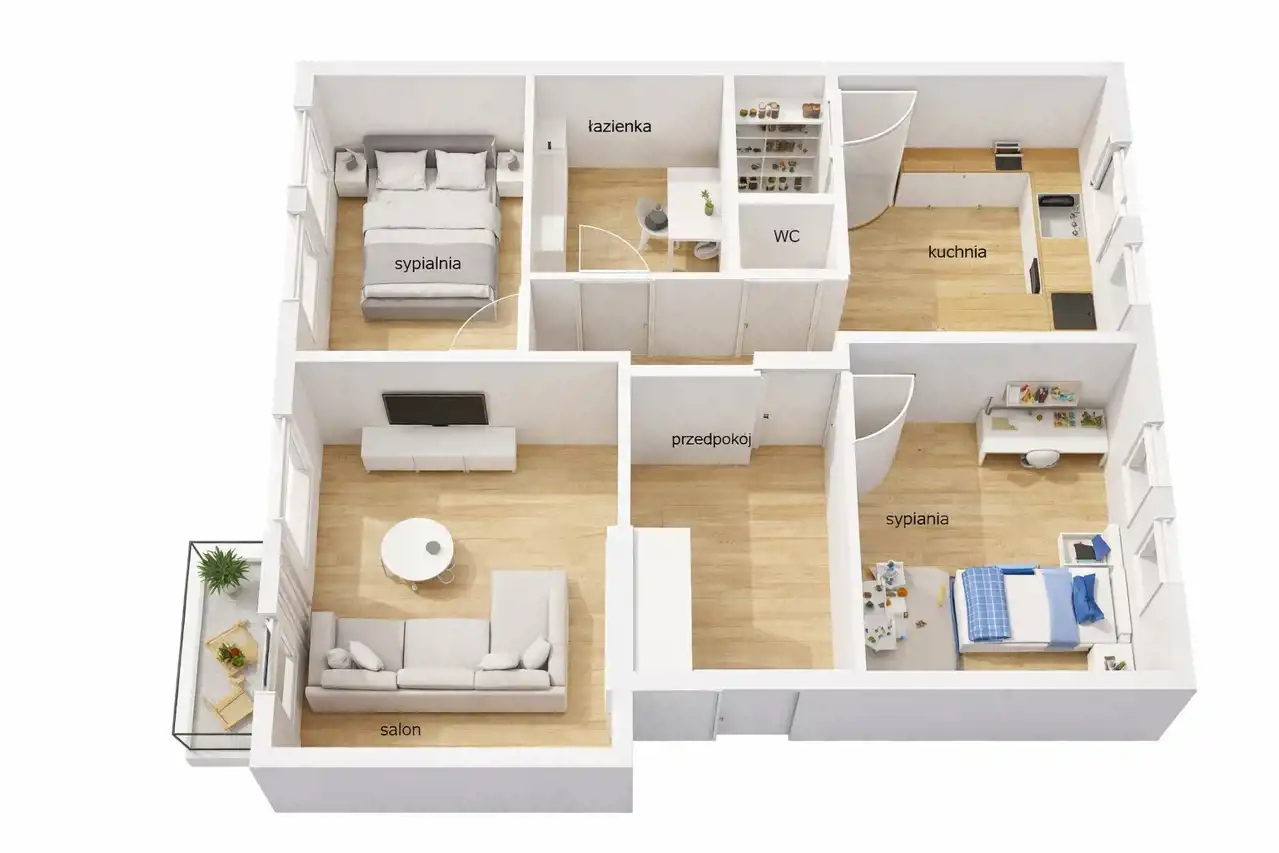 - Charakterystyka mieszkania 65.12 m2, 3 pokoje