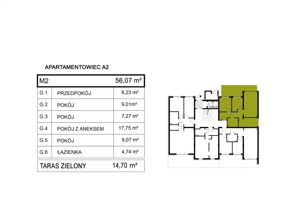 Do lokalu przynależy zielony taras o powierzchni 14,70m2.