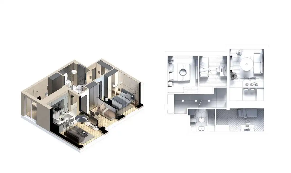 - Charakterystyka mieszkania 55.87 m2, 4 pokoje
