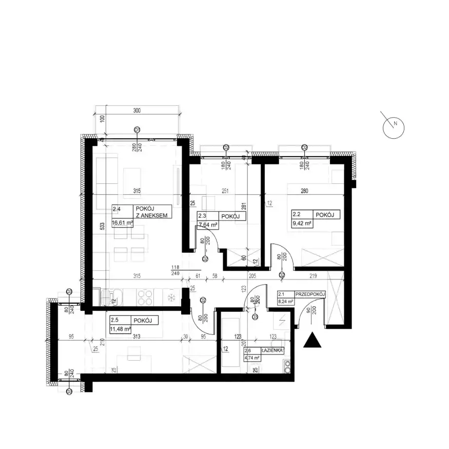 - Charakterystyka mieszkania 57.86 m2, 4 pokoje