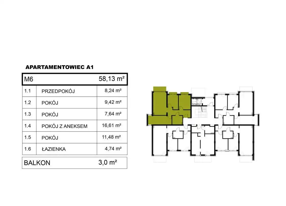 - Charakterystyka mieszkania 57.99 m2, 4 pokoje