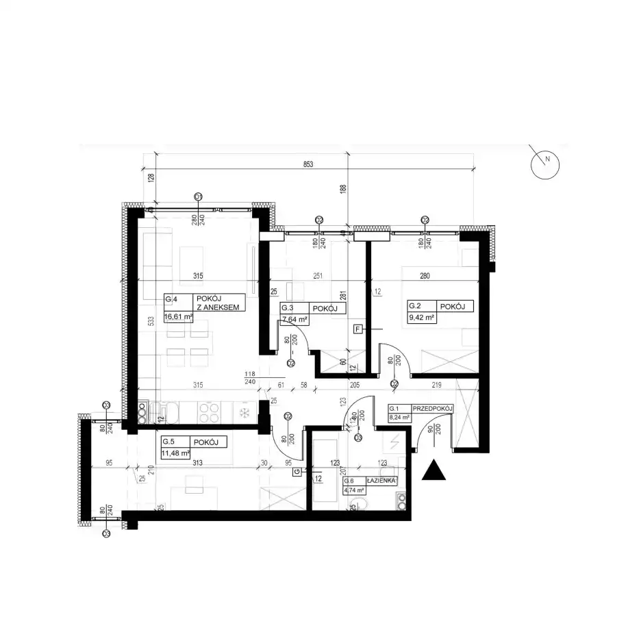 - Charakterystyka mieszkania 58.04 m2, 4 pokoje