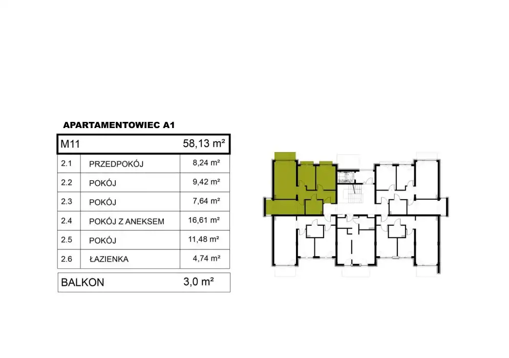- Charakterystyka mieszkania 58.11 m2, 4 pokoje