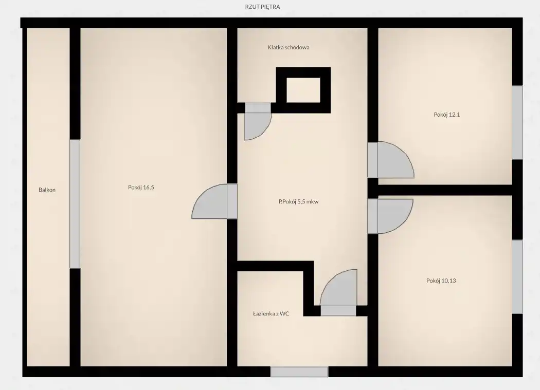Na parterze znajduje się przestronny salon z kominkiem, kuchnia, jadalnia, przedpokój oraz WC. Na piętrze z kolei mieści się duży salon z balkonem (5 m długości), dwie sypialnie oraz łazienka z WC. Dodatkowym atutem jest duże poddasze z ogromnym potencjałem aranżacyjnym.