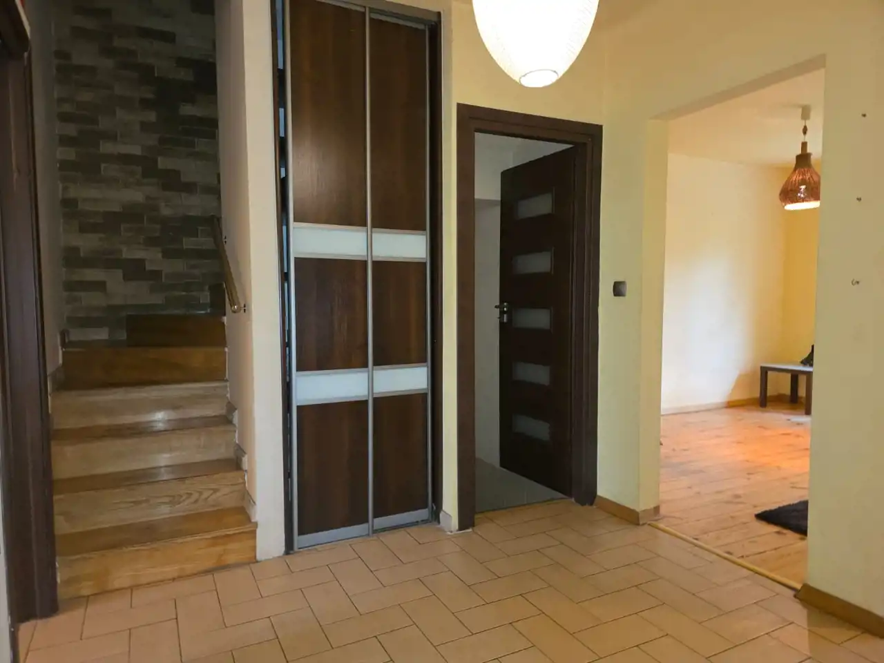 Dom położony w Pionkach przy ulicy Kolejowej to idealne miejsce dla osób ceniących spokój, zieleń i wygodę. Mimo swojego położenia, nieruchomość znajduje się w zacisznym miejscu, na pięknie zarośniętej działce, odsuniętej od drogi. Dzięki temu na podwórku panuje cisza i prywatność, a z balkonów można podziwiać malowniczy widok na okoliczną zieleń. Z tyłu domu brak bezpośrednich sąsiadów, co daje jeszcze większy komfort.
