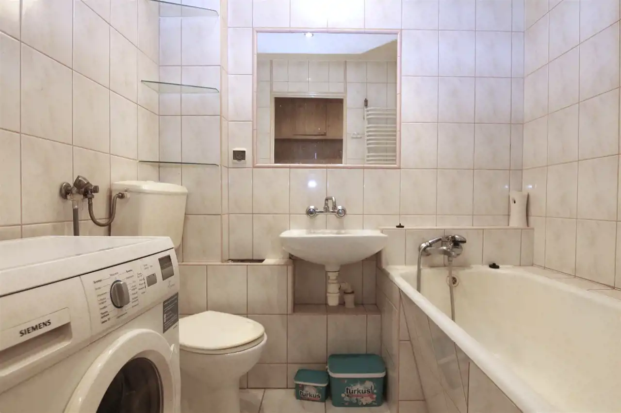 - Media Ogrzewanie: C.O. miejskie; Woda: ciepła - piecyk gazowy; Gaz: tak - miejski