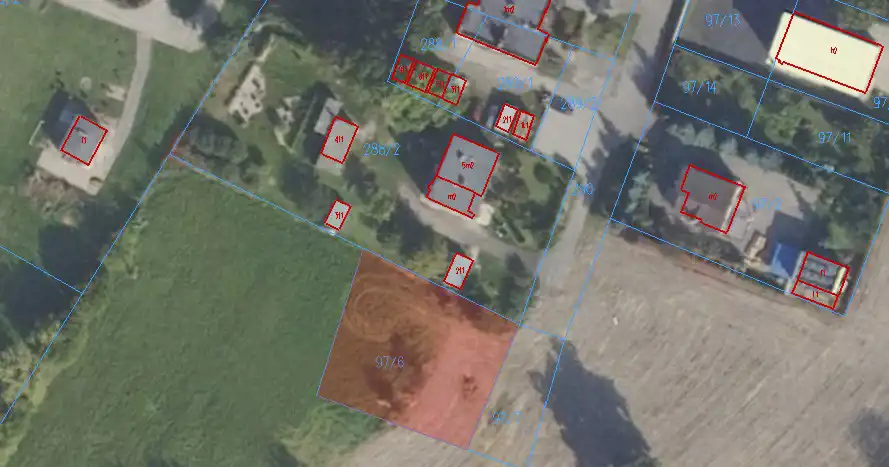 Działka o numerze geodezyjnym 97/6. Działka nie jest ogrodzona. Dojazd do działki drogą gminną - służebność.