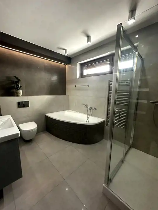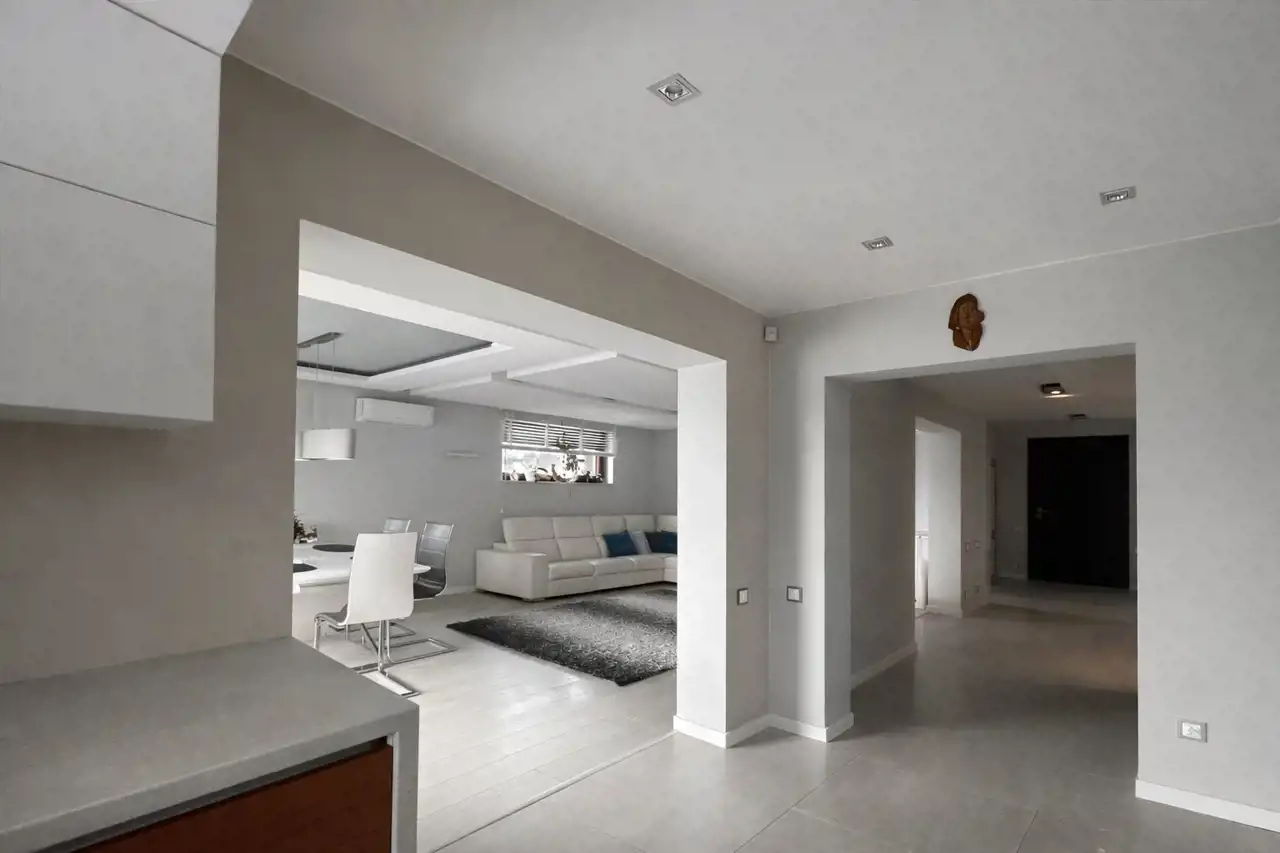 Nieruchomość nowoczesna, komfortowa, wnętrza utrzymane w jasnych, stonowanych kolorach.