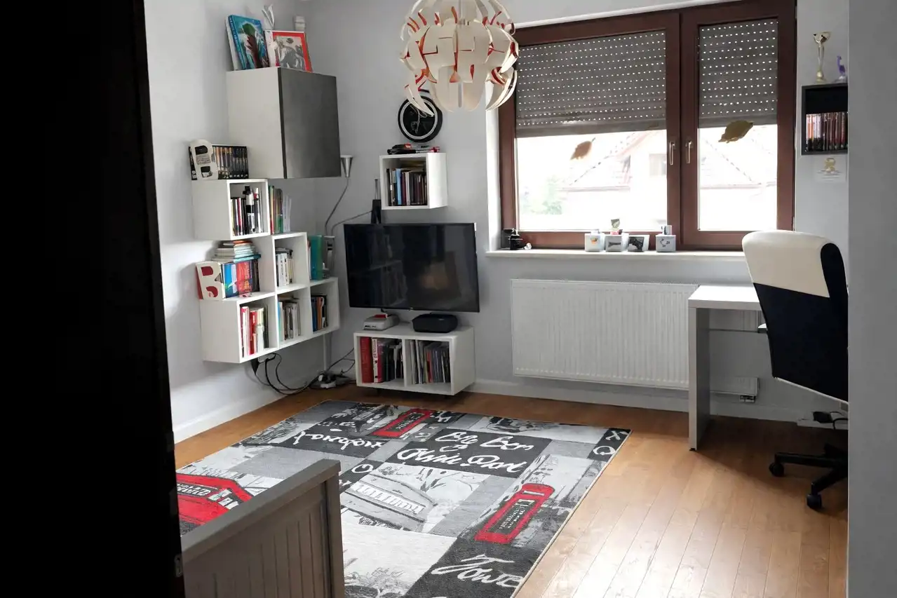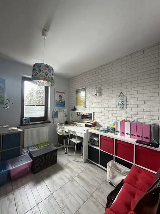Praktyczny układ pomieszczeń, idealny dla rodzin z dziećmi. Dom, wyróżniający się funkcjonalnością i starannym wykonaniem. Dom posiada odrębne wejście do wydzielonego gabinetu z własnym WC oraz korytarzem gospodarczym. Powierzchnia idealna do zagospodarowania na gabinet lekarski, fizjoterapeutyczny lub biuro dla osoby przyjmującej klientów. Przestrzeń jest niezależna od części mieszkalnej.