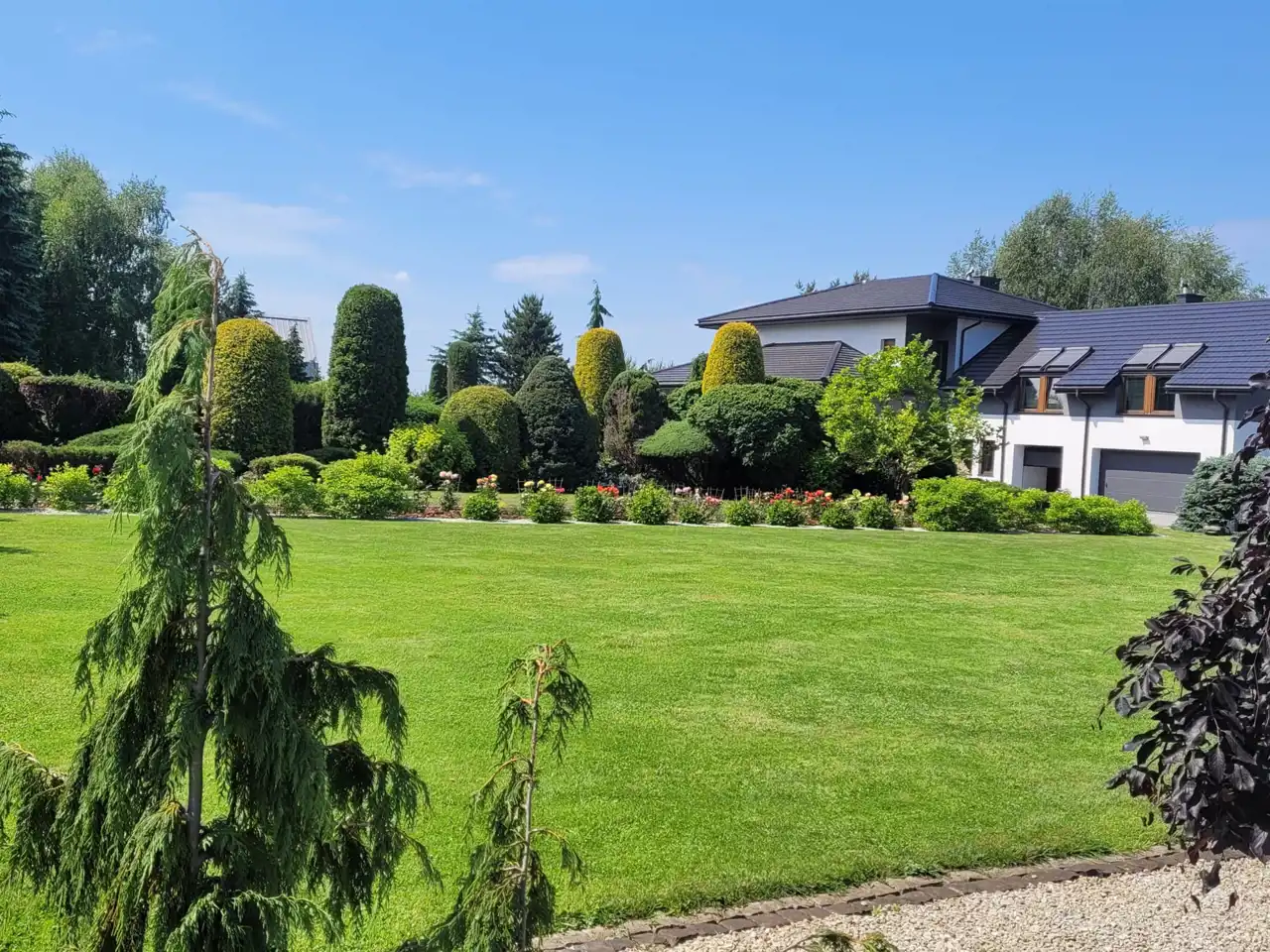 - starannie utrzymany trawnik, 30-letnie drzewa,