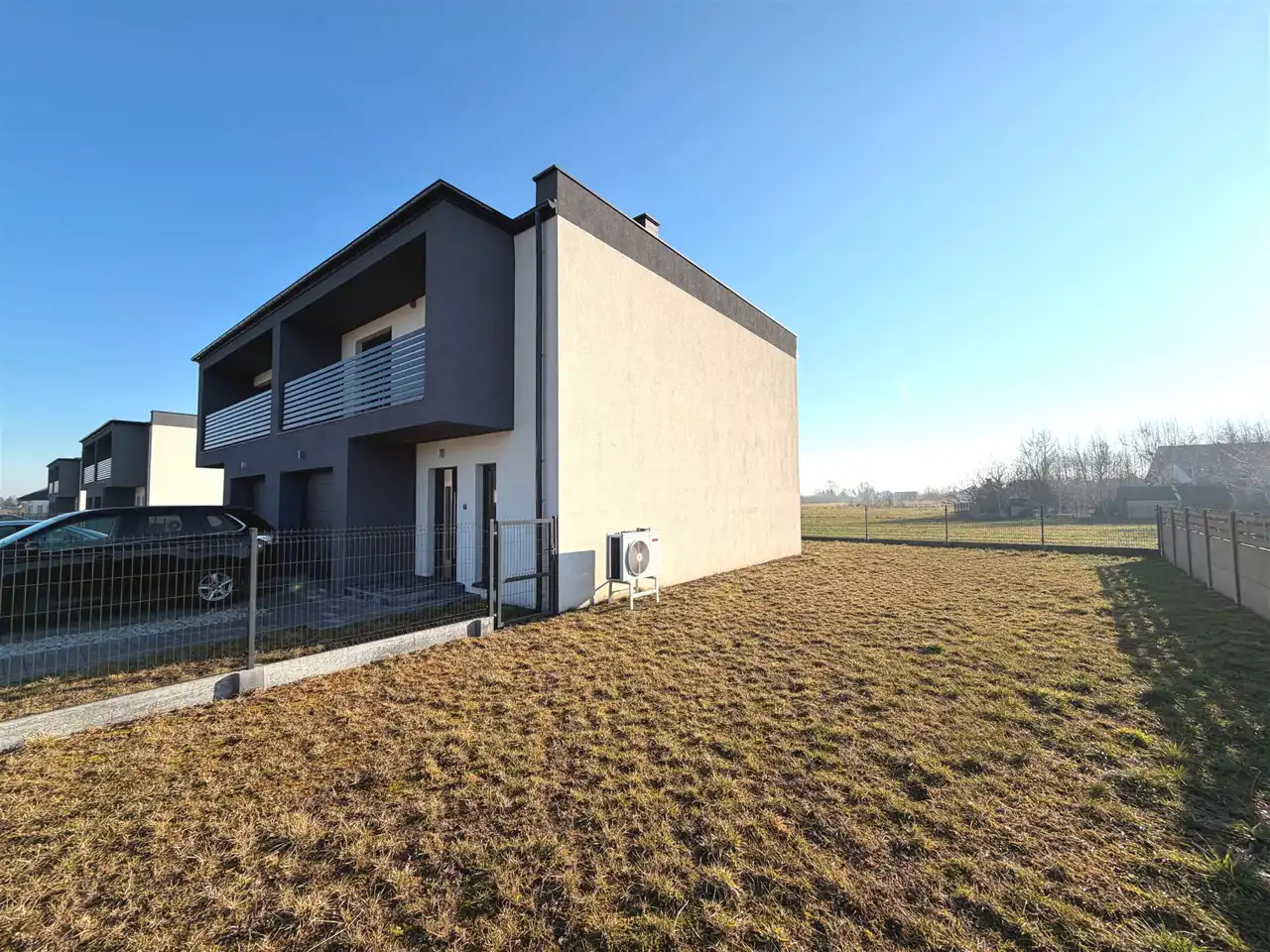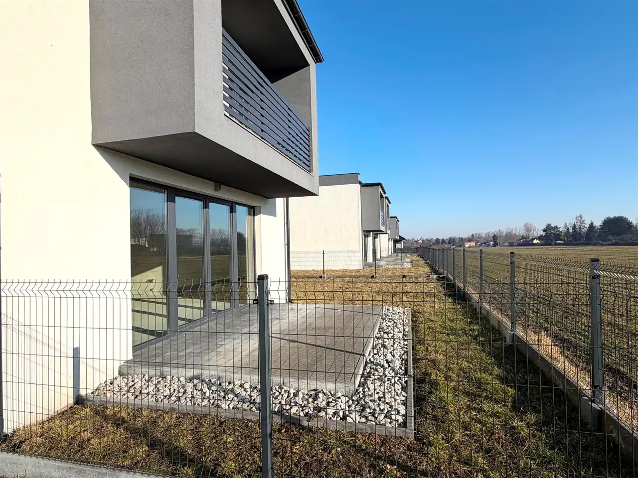 Inwestor jest na etapie geodezyjnego wydzielania działki pod każdym z budynków i z tego powodu nie możemy podać precyzyjnie powierzchni działki. Będzie ona wynosić około 340 metrów kwadratowych - w tym powierzchnia ogrodu - około 190 metrów kwadratowych.