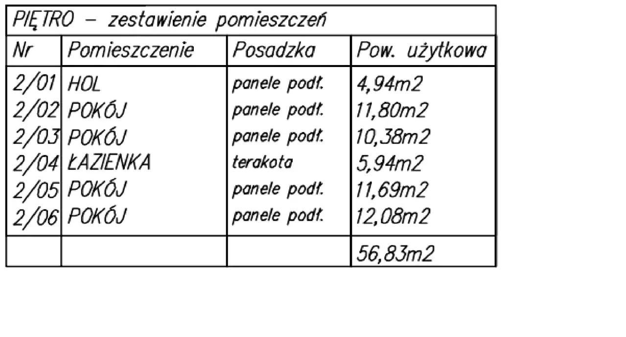 Łącznie piętro : 56,83 metrów kwadratowych