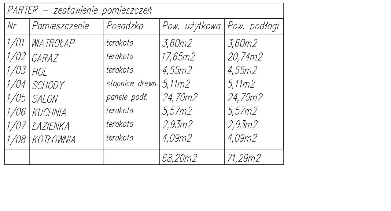 Łącznie parter: 68,20 metrów kwadratowych