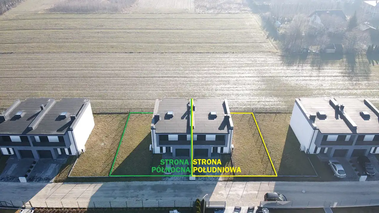 Na tym etapie sprzedaży jest możliwość wyboru budynku usytuowanego od południowej strony działki ( przy cenie ofertowej z ogłoszenia ) lub od północnej strony działki (przy cenie ofertowej 699 tys. zł.)