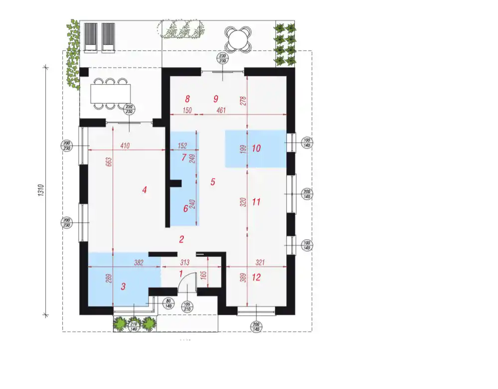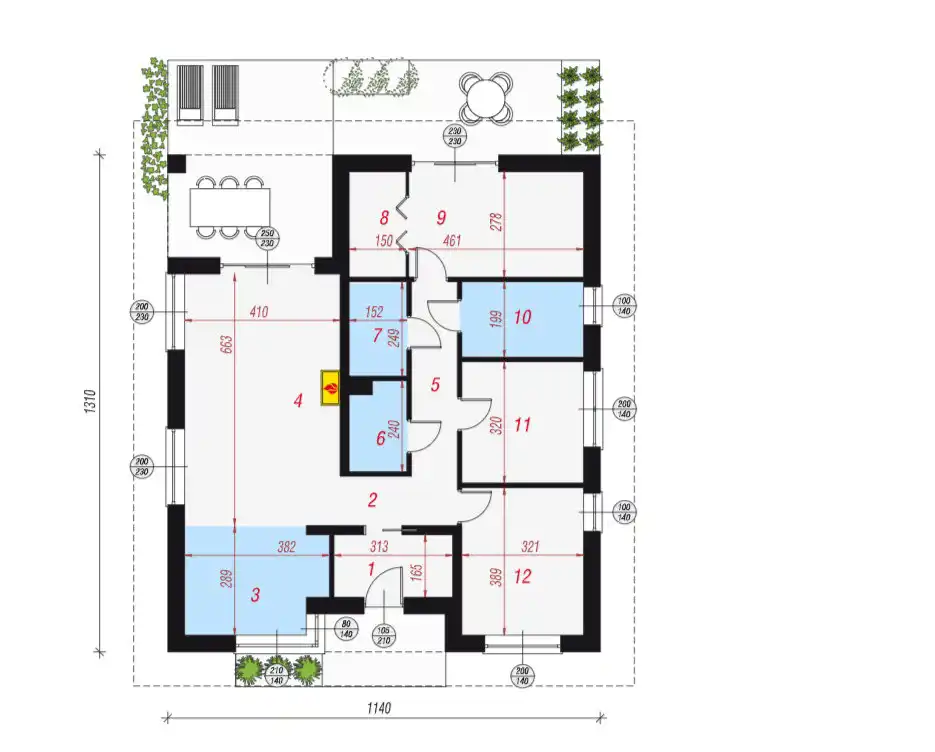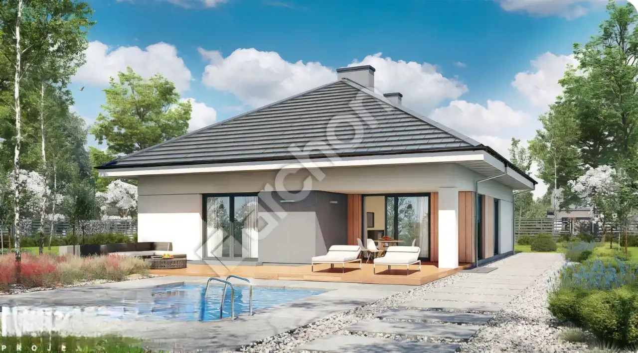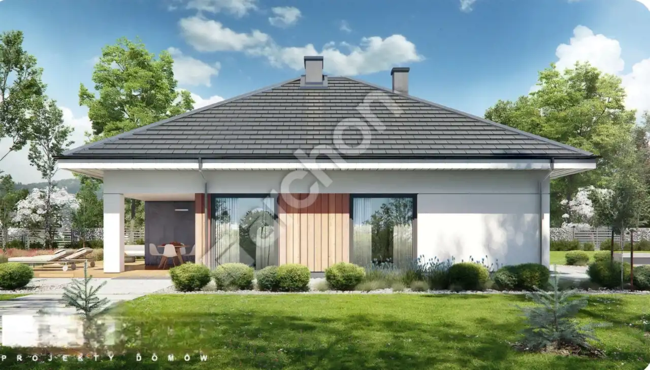Dom parterowy o powierzchni całkowitej 103,70m2.