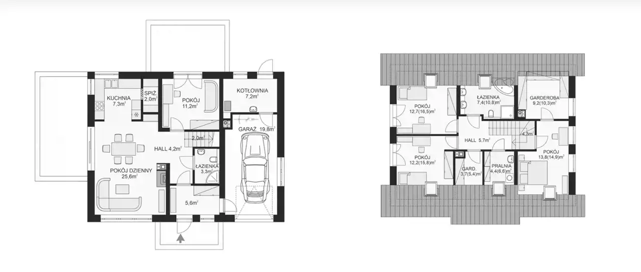 Powierzchnia domu APS 345: 134,6m2 +27m2(kotłownia+garaż)