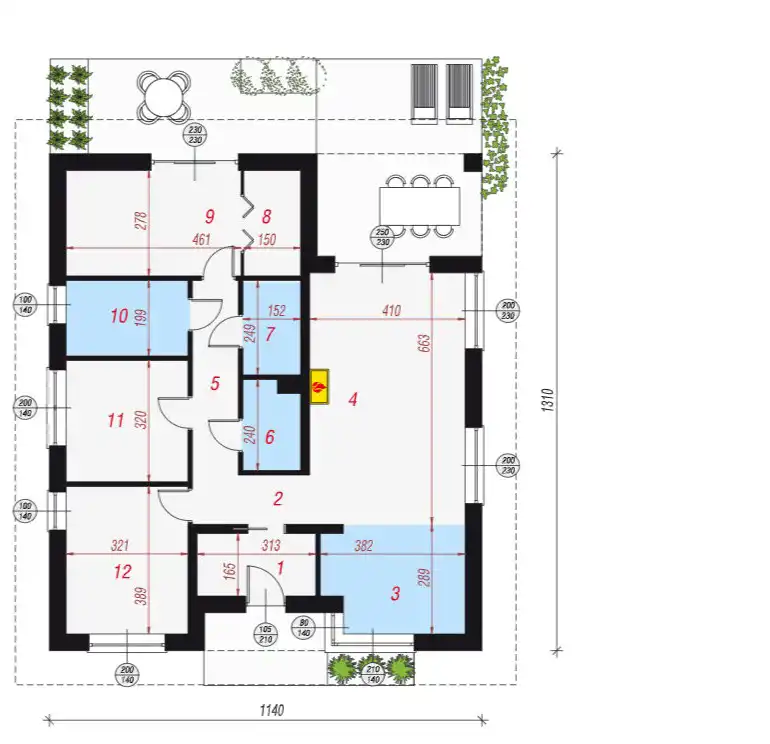 Dom parterowy o powierzchni całkowitej 129,72m2.
