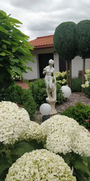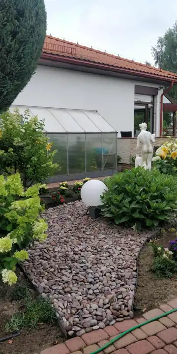 Cudowny ogród z licznymi nasadzeniami, umożliwiający odpoczynek zaciszu własnego domu.