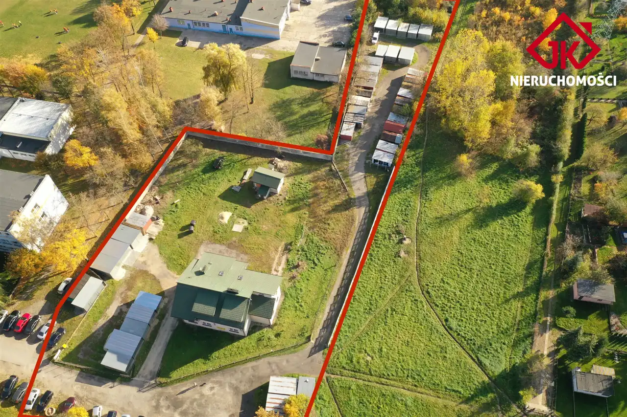 Na działce znajduje się dom o pow. 430m2, budynek gospodarczy o pow. 35m2. Pozostała część działki zagospodarowana garażami metalowymi o konstrukcji lekkiej.