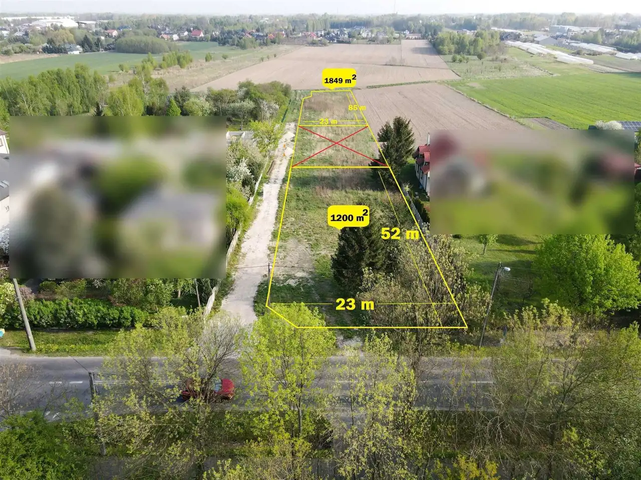 - Działka Niezagospodarowana, lekko nachylona, prostokąt
