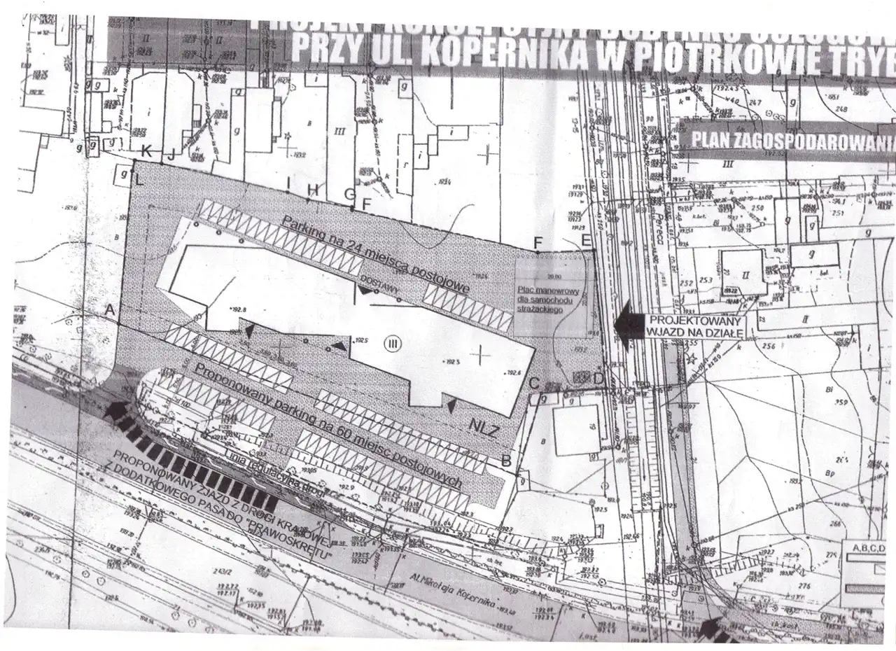 Lokalizacja Piotrków Trybunalski Aleja Kopernika. Wjazd istniejący od strony starego miasta. Dwa wjazdy z ulicy (jeden istniejący ,drugi projektowany).