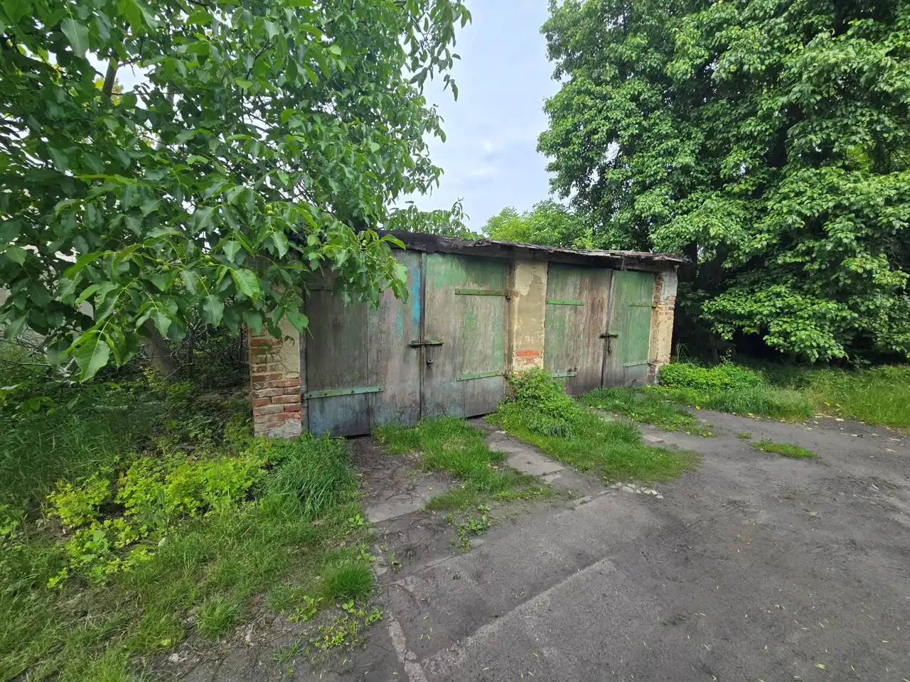 Na działce znajdują się również dwa garaże murowane oraz dwa garaże blaszane, komórki.