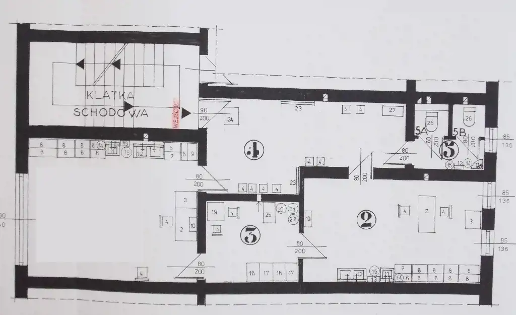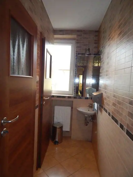 Lokal położony na pierwszym piętrze budynku z cegły w centrum miasta. Wejście do budynku od ruchliwej drogi.