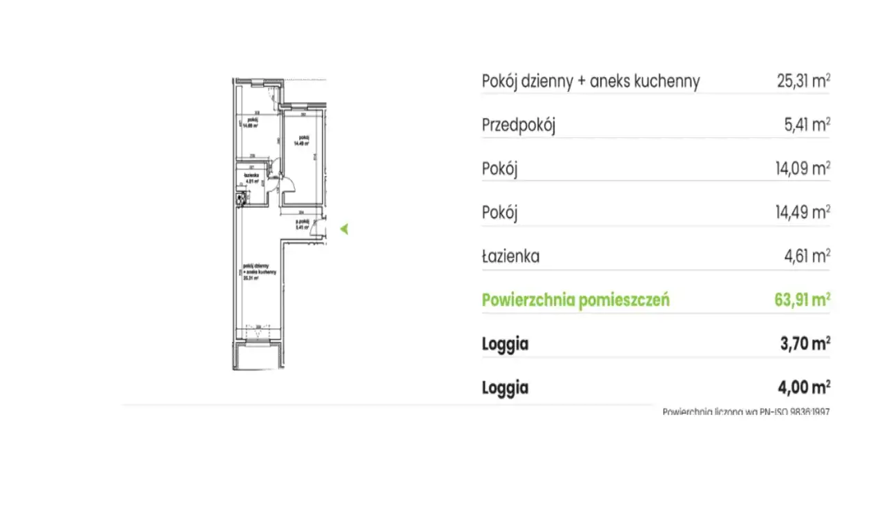 Powierzchnia mieszkania 66,43 m2,