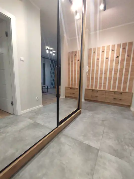 Mieszkanie komfortowe wykończone z wysokiej klasy materiałów. W oknach rolety
