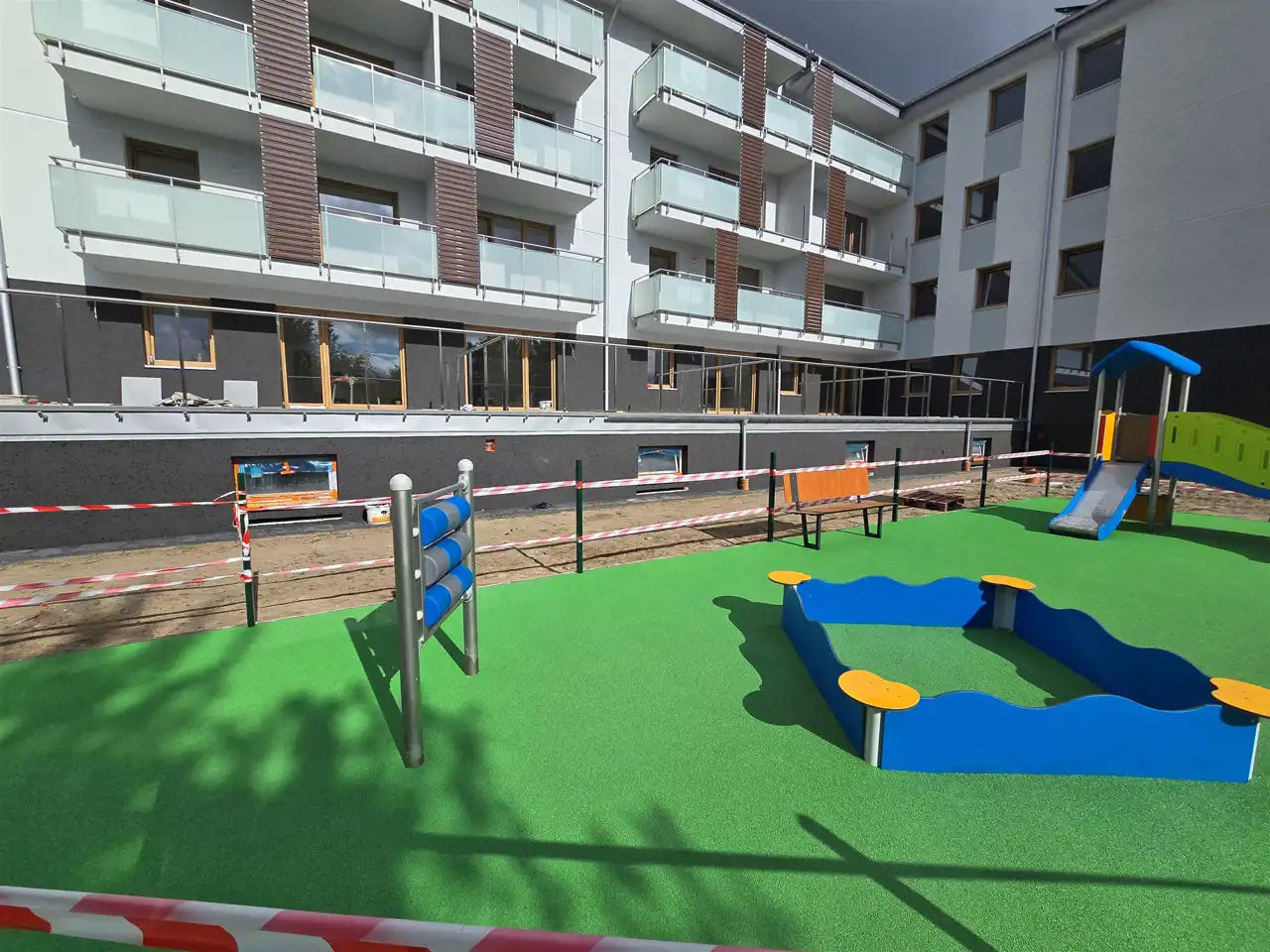 Teren ogrodzony, na terenie bloku plac zabaw.