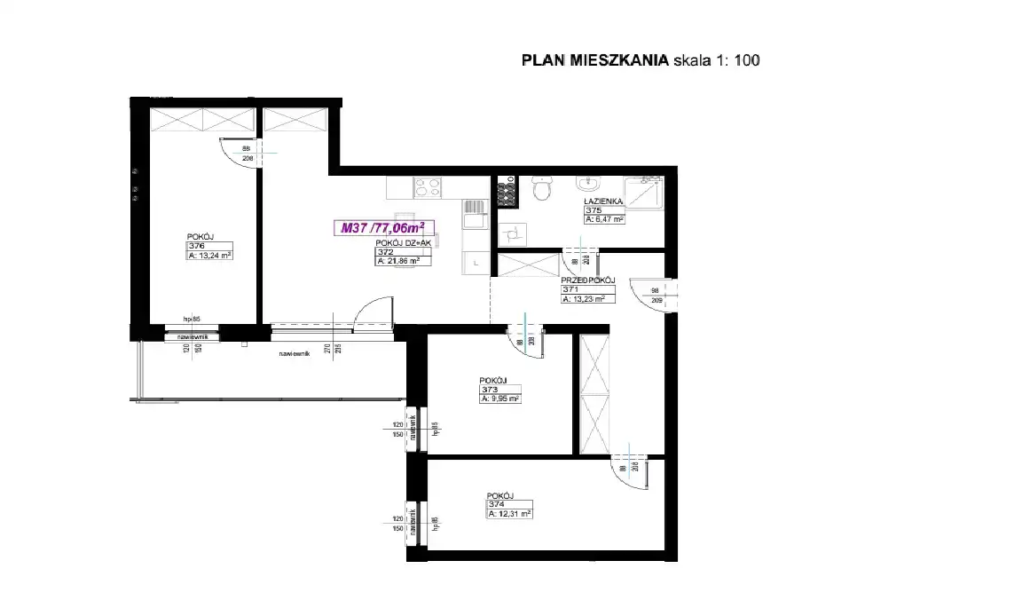 - Charakterystyka mieszkania 77.06 m2, 4 pokoje