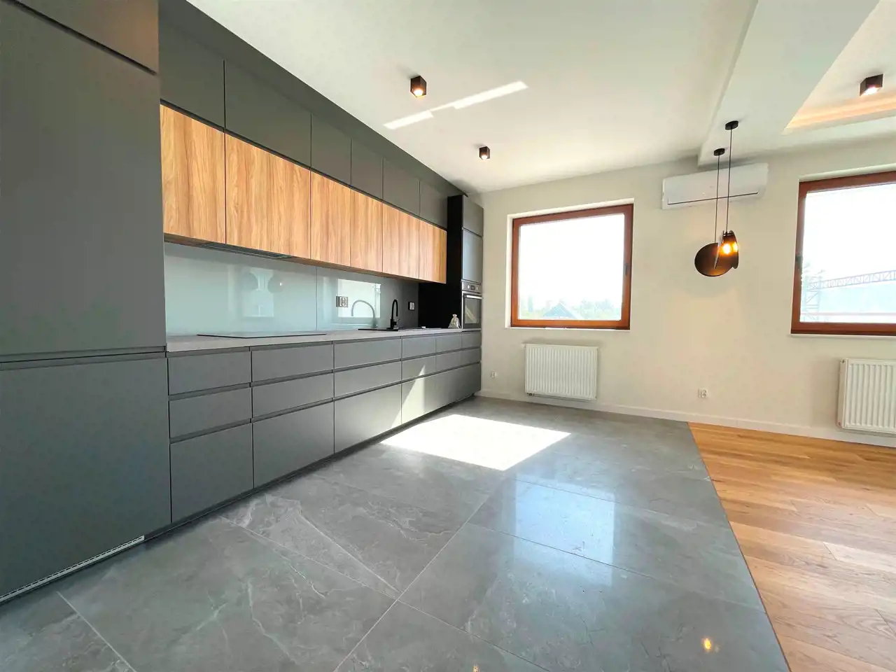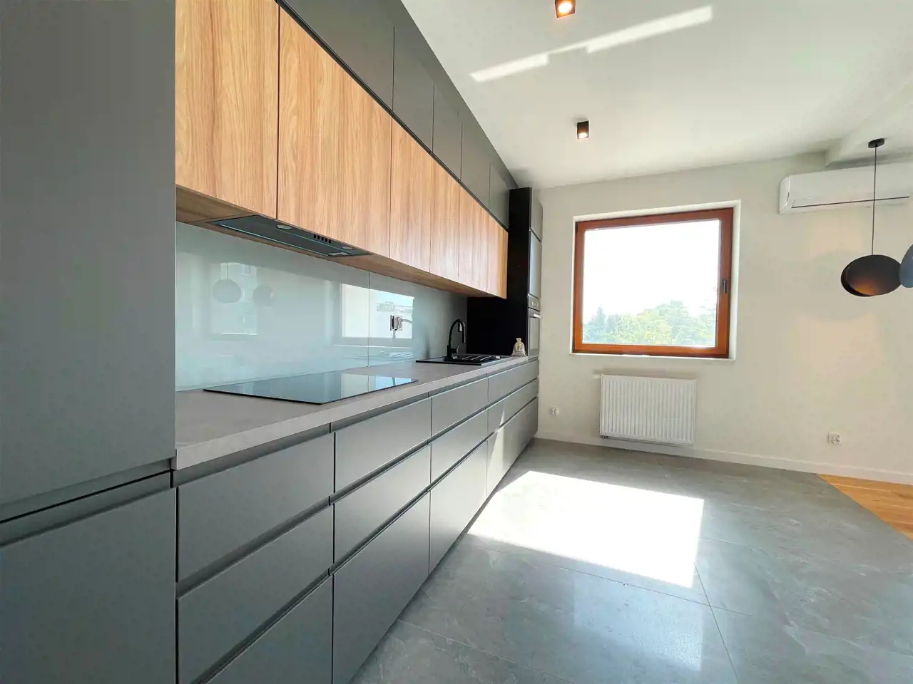 8. kuchnia z meblami i sprzętami (lodówka, okap, zmywarka, płyta