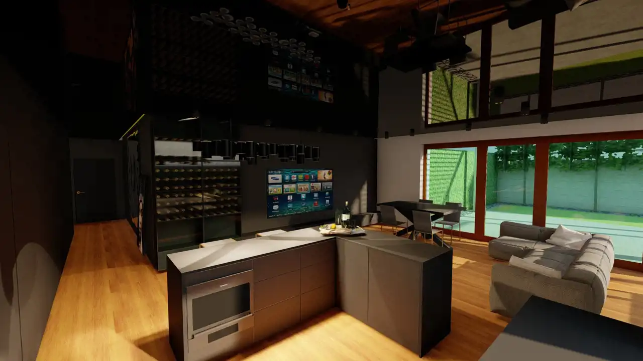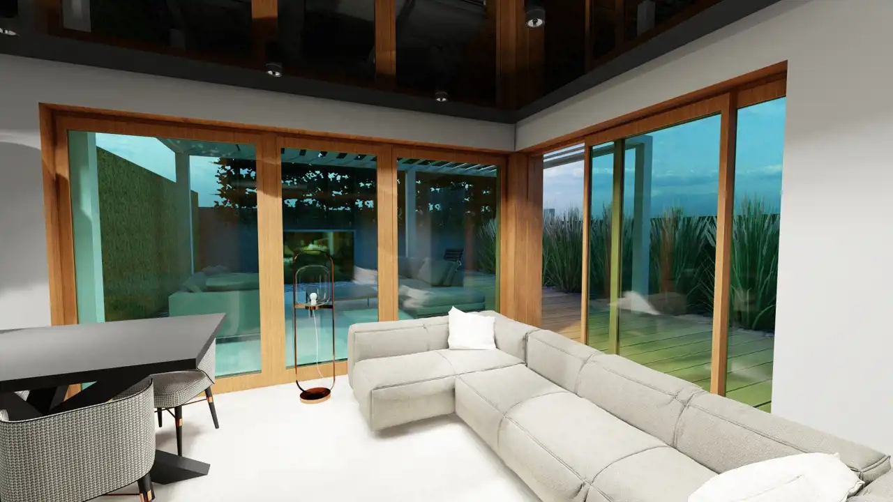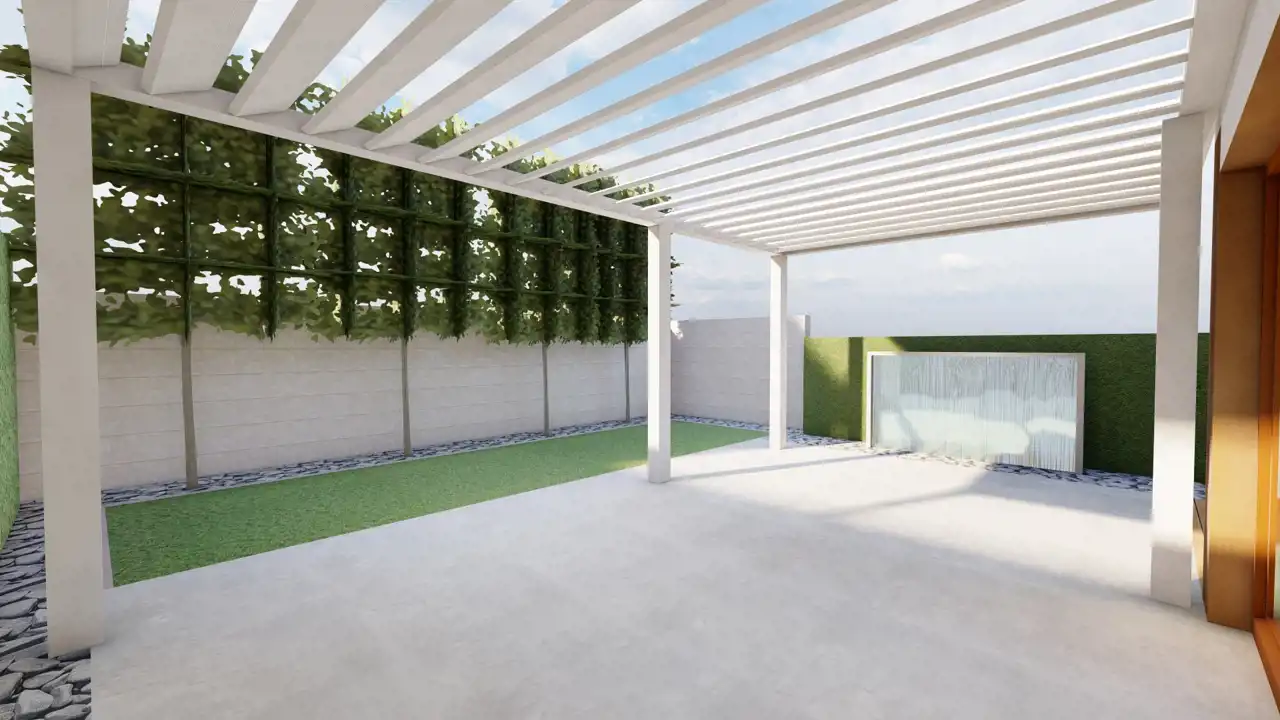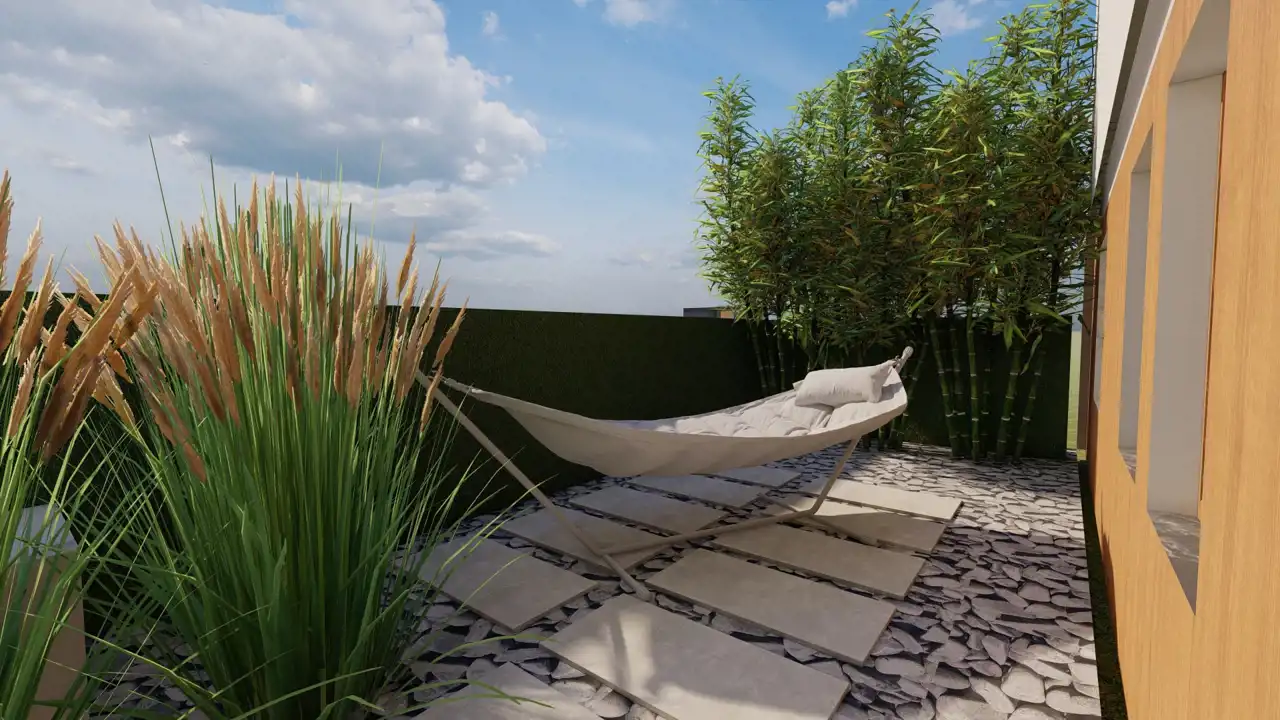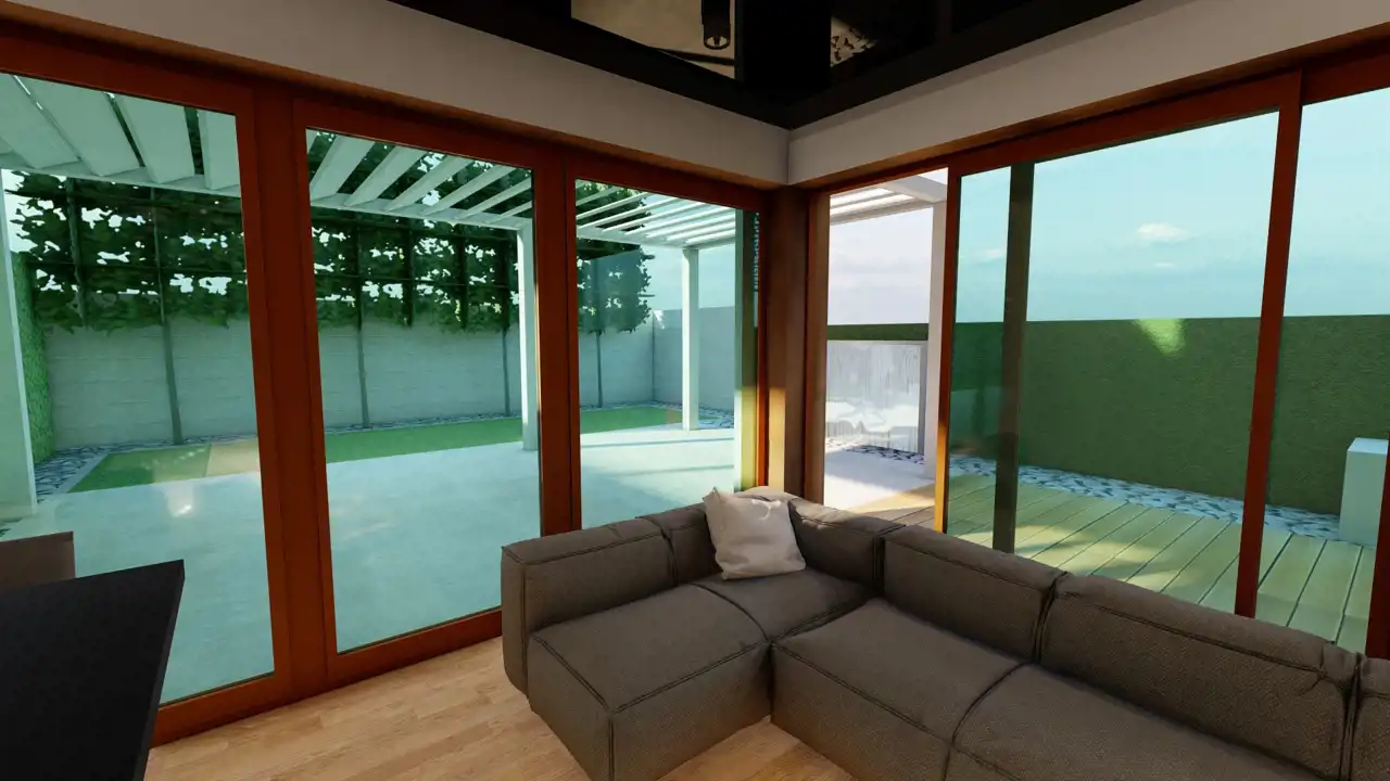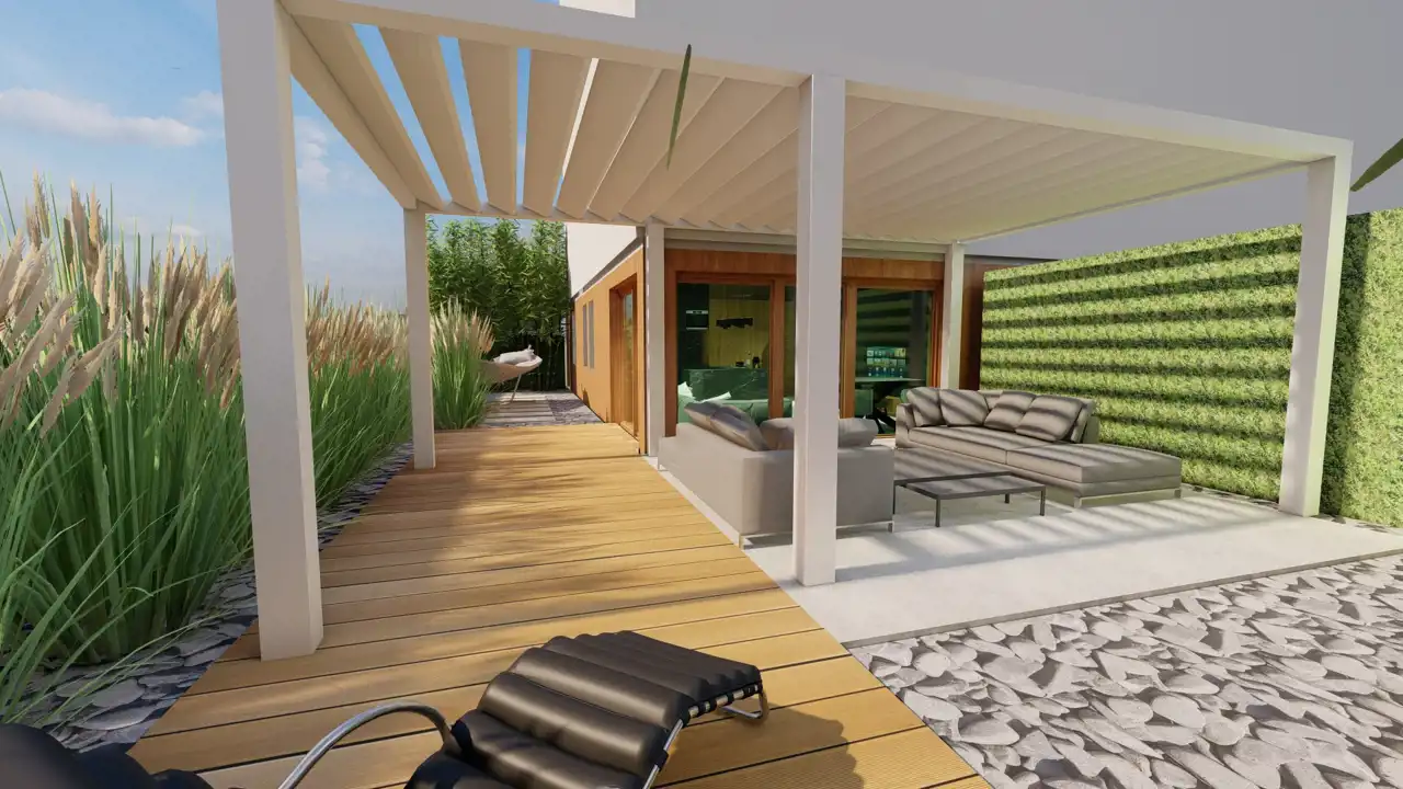 Dla lokalu został zaprojektowany taras zadaszony z ogrodem.