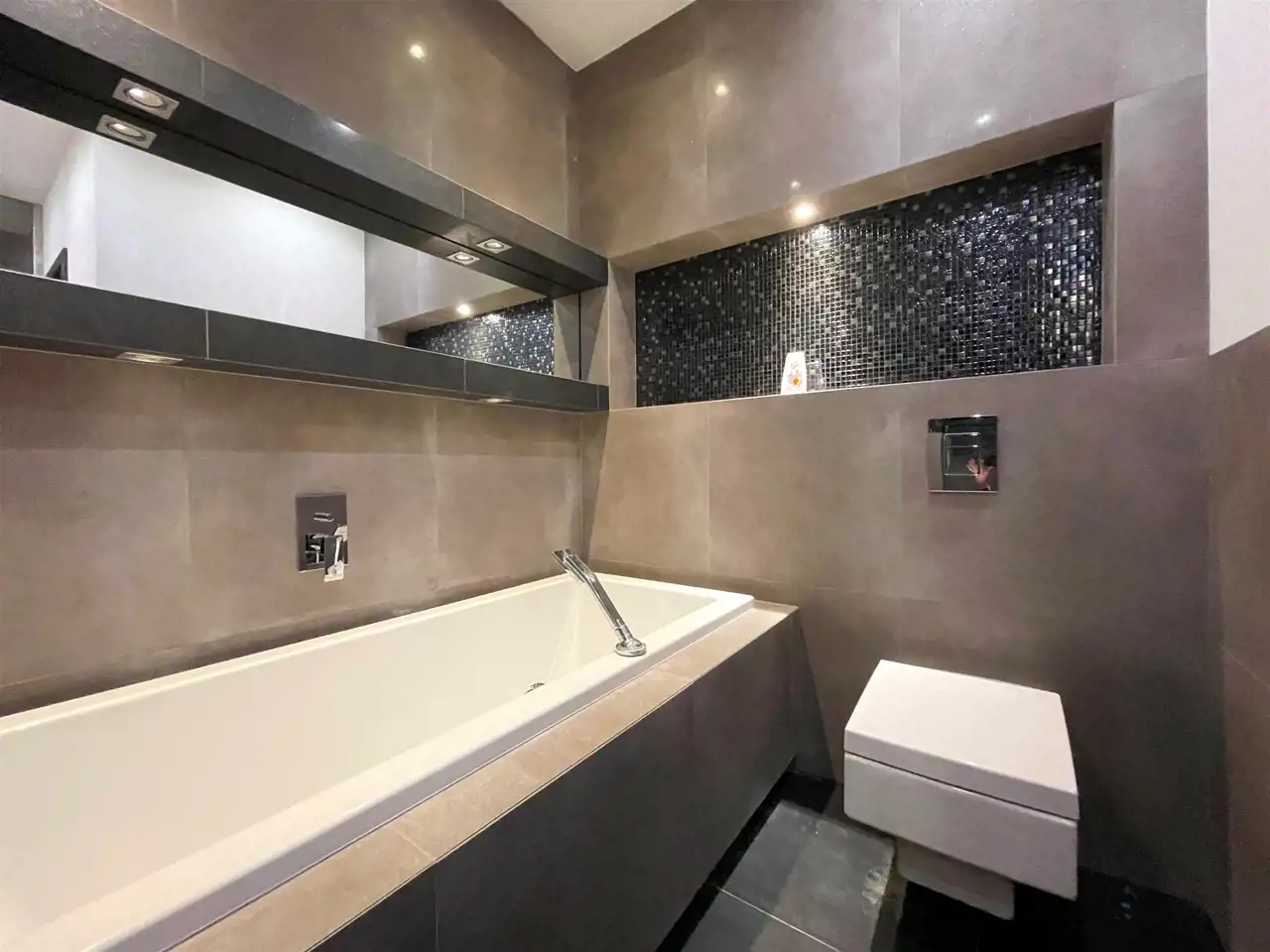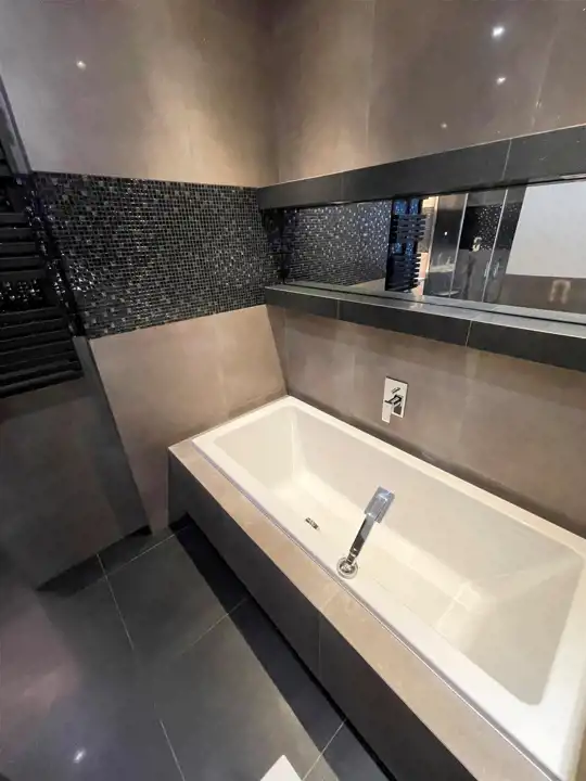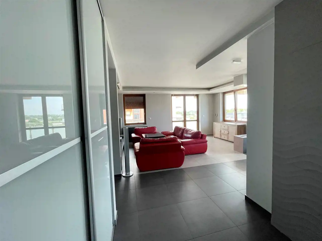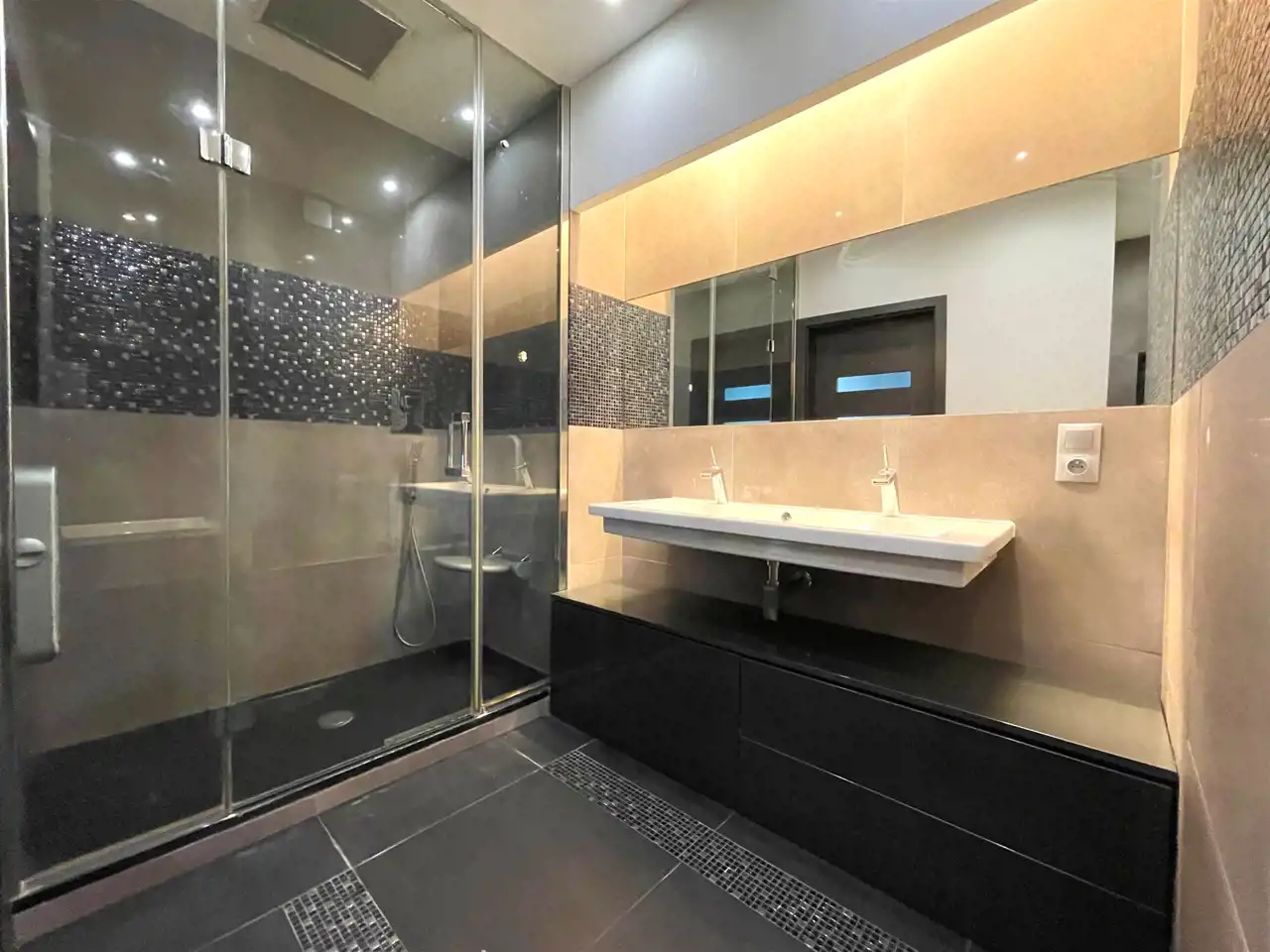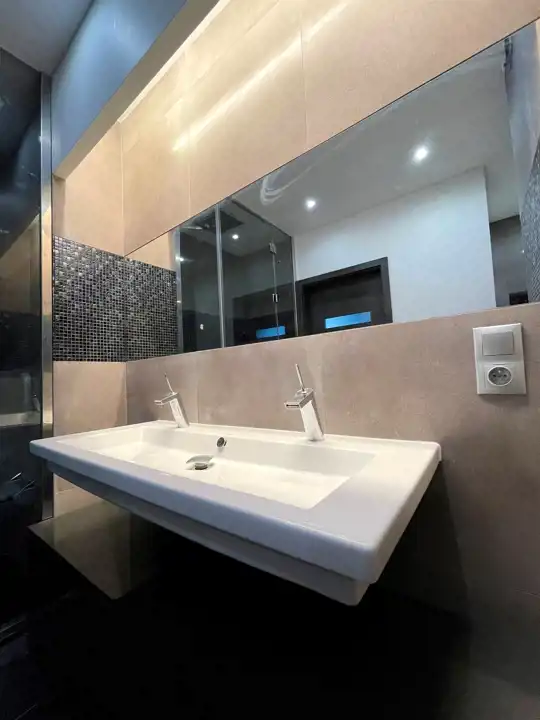 We wszystkich oknach automatycznie sterowane rolety. Ogrzewanie podłogowe w łazienkach.