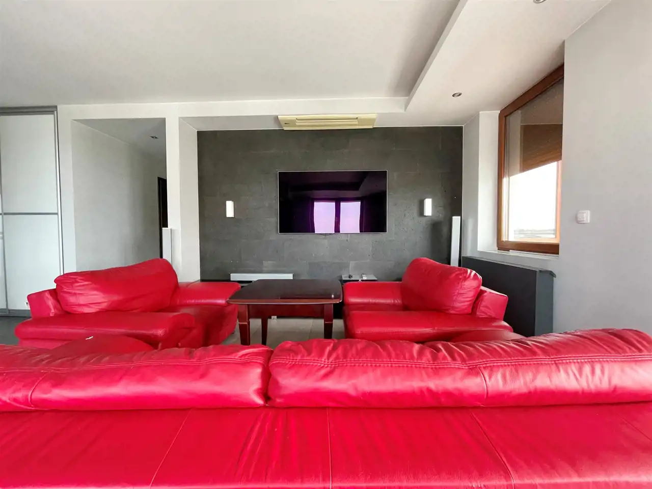 W upalne dni pomocna będzie klimatyzacja, która jest zamontowana w salonie oraz głównej sypialni.