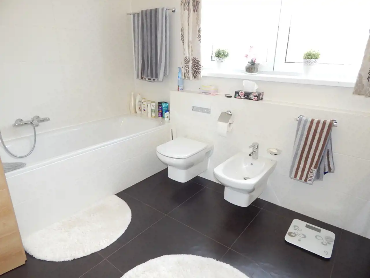 Na podłogach parkiety, w łazience gustowna glazura i terakota.