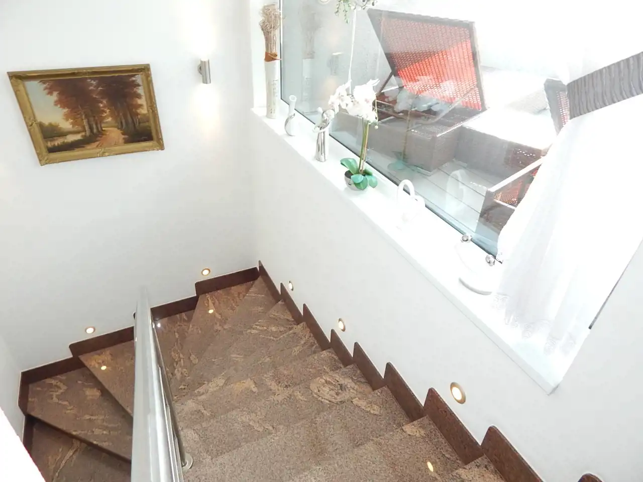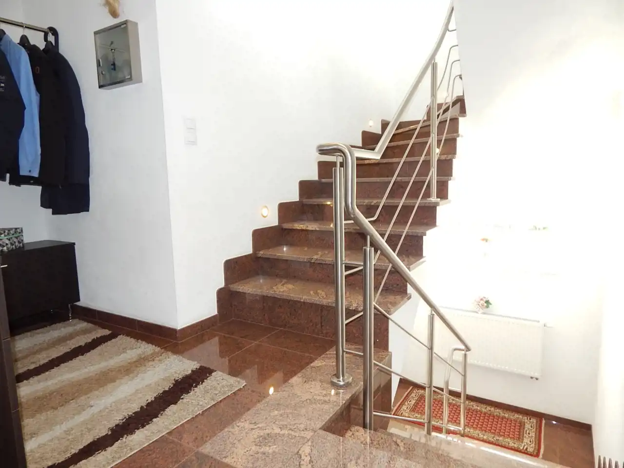 Klatka schodowa granitowa. Liczne oświetlenie w całym mieszkaniu.