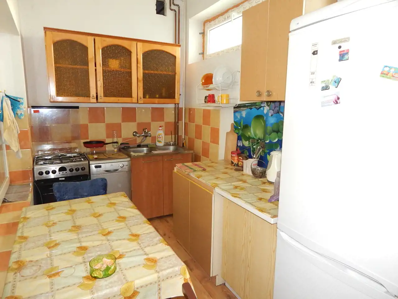 Duży pokój (60m2), kuchnia, łazienka z wanną, łazienka z natryskiem.