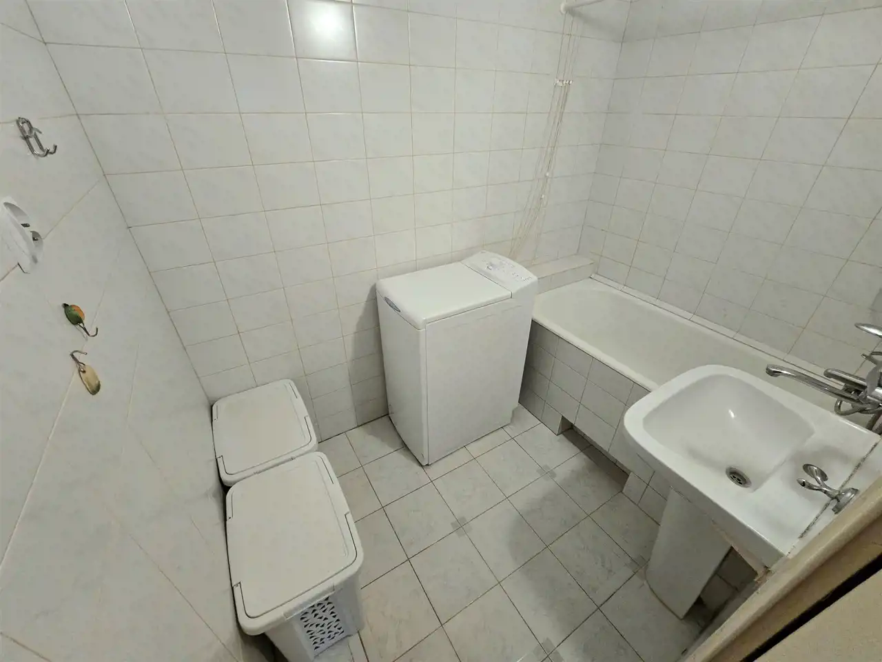 W łazience pralka.
