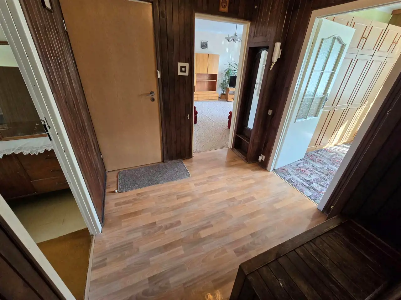 Dwa duże pokoje, trzeci mniejszy.