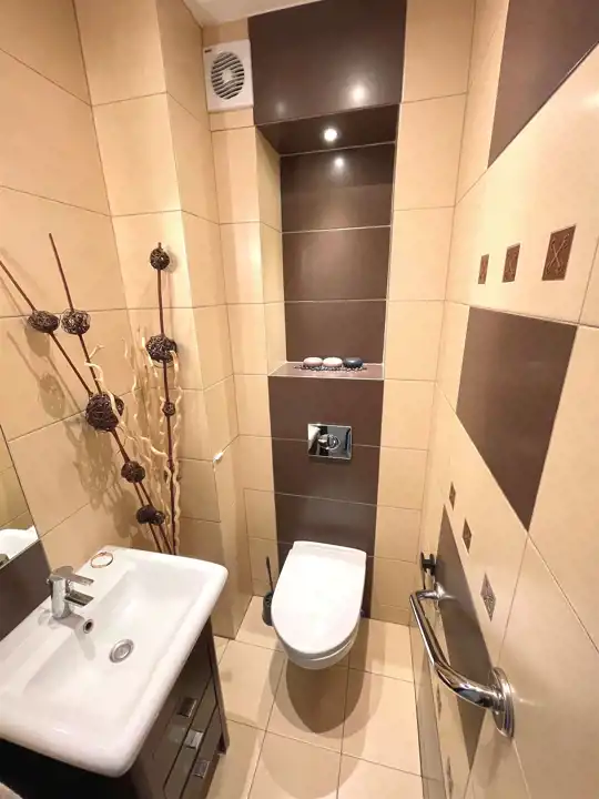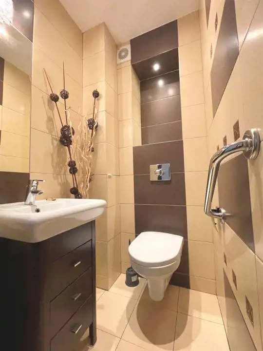 Mieszkanie składa się z salonu, sypialni, kuchni, łazienki, WC oraz przedpokoju.