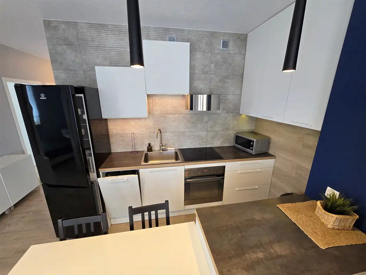 W kuchni zmywarka, lodówka z zamrażalnikiem, piekarnik, płyta indukcyjna, okap.