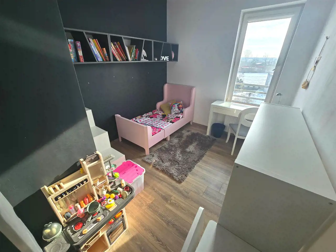 Dwie sypialnie: W tym jedna z dużym, komfortowym łóżkiem i nastrojowym oświetleniem. Drugi pokój idealnie sprawdzi się jako kolorowy i funkcjonalny pokój dziecięcy.